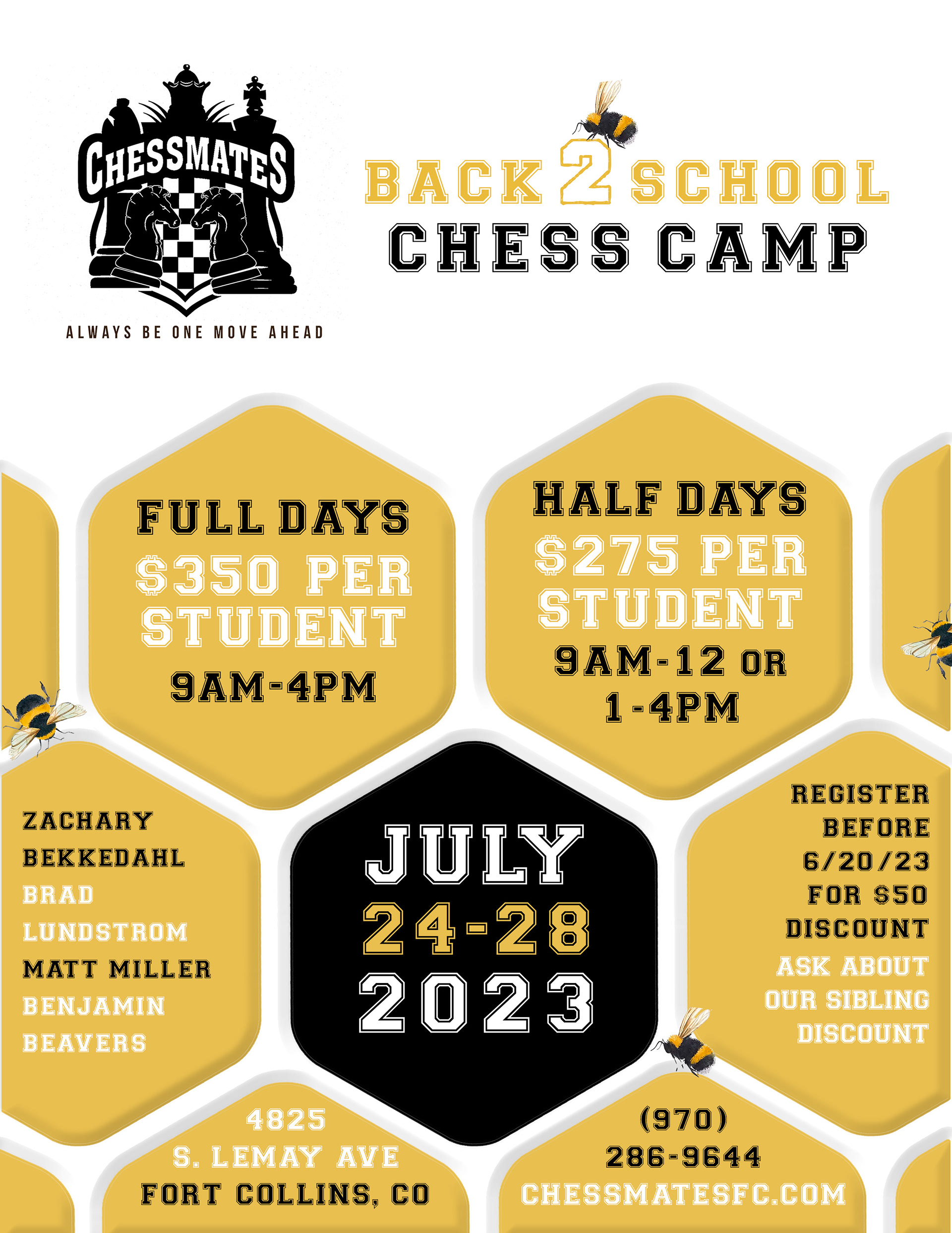 Below is a small collection of work I have done for Chessmates, a business based in Denver that provides chess clubs, tournaments, and camps to students K-12. All flyers and elements used in these flyers (aside from the Chessmates logo) were designed from scratch using Photoshop, Illustrator and/or Canva.